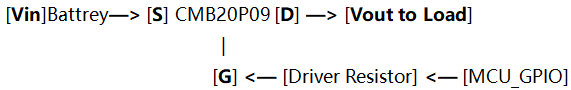 这是P-MOSFET最经典的应用。CMB20P09常被用于系统的电源输入侧,作为主电源开关。
