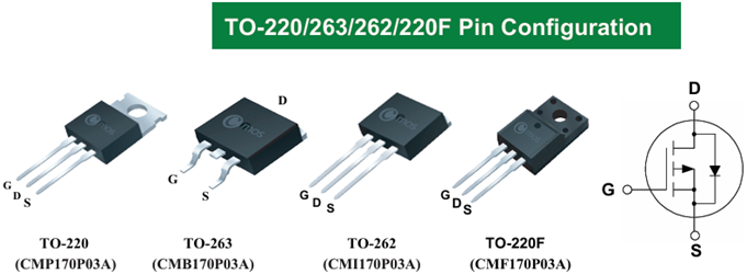 4. 提供TO-220、TO-220F、TO-262和TO-263 (D²PAK) 封装,显著特点是封装坚实,机械性良好。