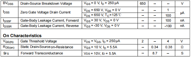 CMF65R380的主要电气特性包括: