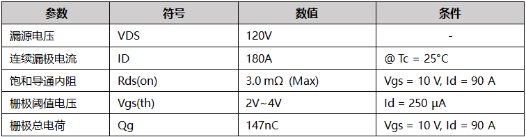 极低导通电阻 (Rds(on)): 在10V驱动电压(Vgs)下,最大值仅3.0mΩ(@ 25°C)。低导通损耗意味着更少的能量以热量形式耗散,直接提升系统整体效率,尤其在重载条件下。