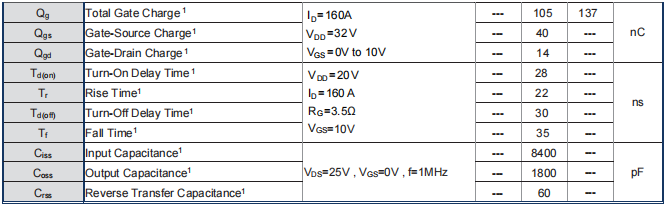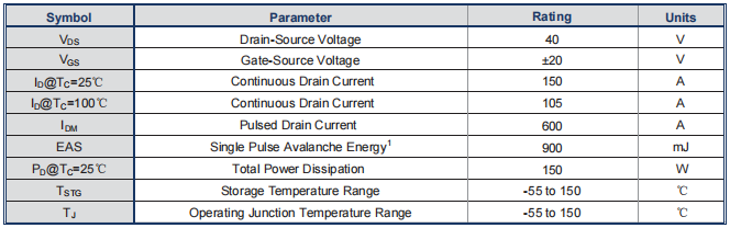电流能力:在Tc=25℃条件下,其最大连续漏极电流(ID)是150A。