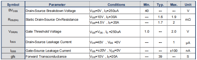 耐压能力:CMD019N04L的耐压(BVDSS)为40V。