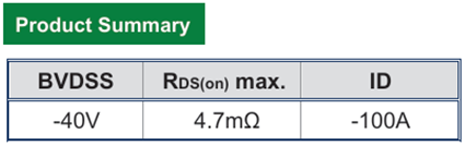 (1)极低的导通电阻 (RDS(on)): 在-10V驱动电压(VGS)下,导通电阻不超过4.7mΩ。这意味着在导通状态下,器件自身的功率损耗被降至极低,显著减少热生成,提升系统整体效率,尤其在高频开关或连续导通应用中优势明显。