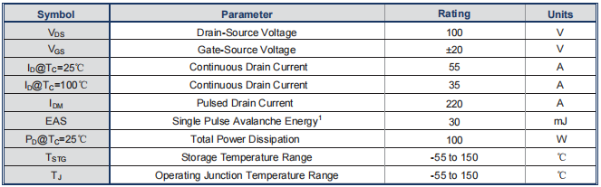 电流能力:在Tc=25℃条件下,其最大连续漏极电流(ID)是55A。