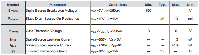 耐压能力:CMF60R078的耐压(BVDSS)为600V。