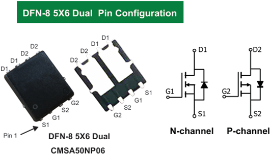 新一代高效功率开关解决方案 —— CMSA50NP06 N+P沟道MOSFET对管
