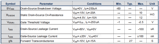 耐压能力:CMP90P06的耐压(BVDSS)为-60V。