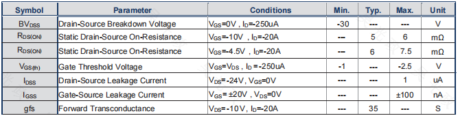 耐压能力:CMP150P03的耐压(BVDSS)为-30V。